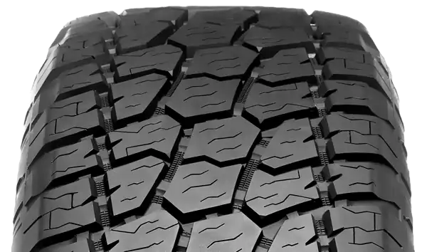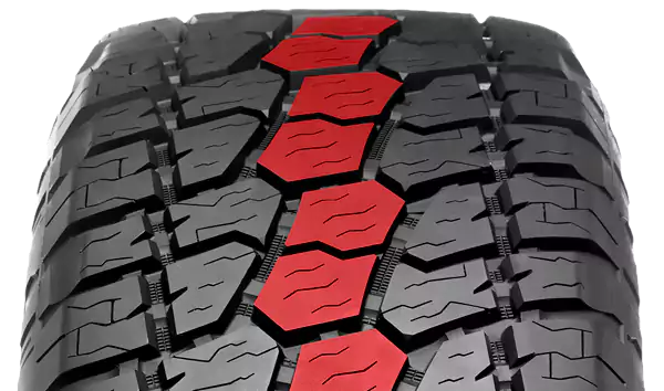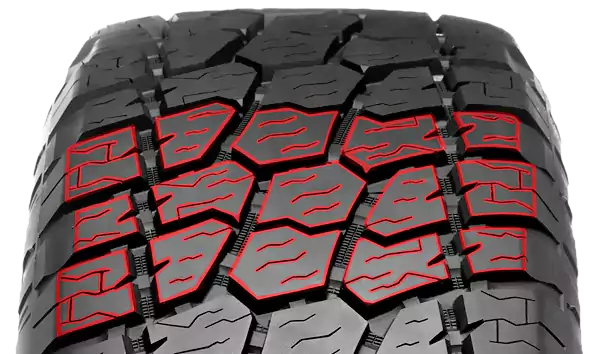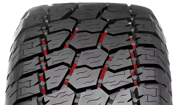 Los tamaños y formas de los bloques de la banda de rodadura optimizados con múltiples ranuras laterales y laminillas en ángulo garantizan una excelente tracción en todos los terrenos.